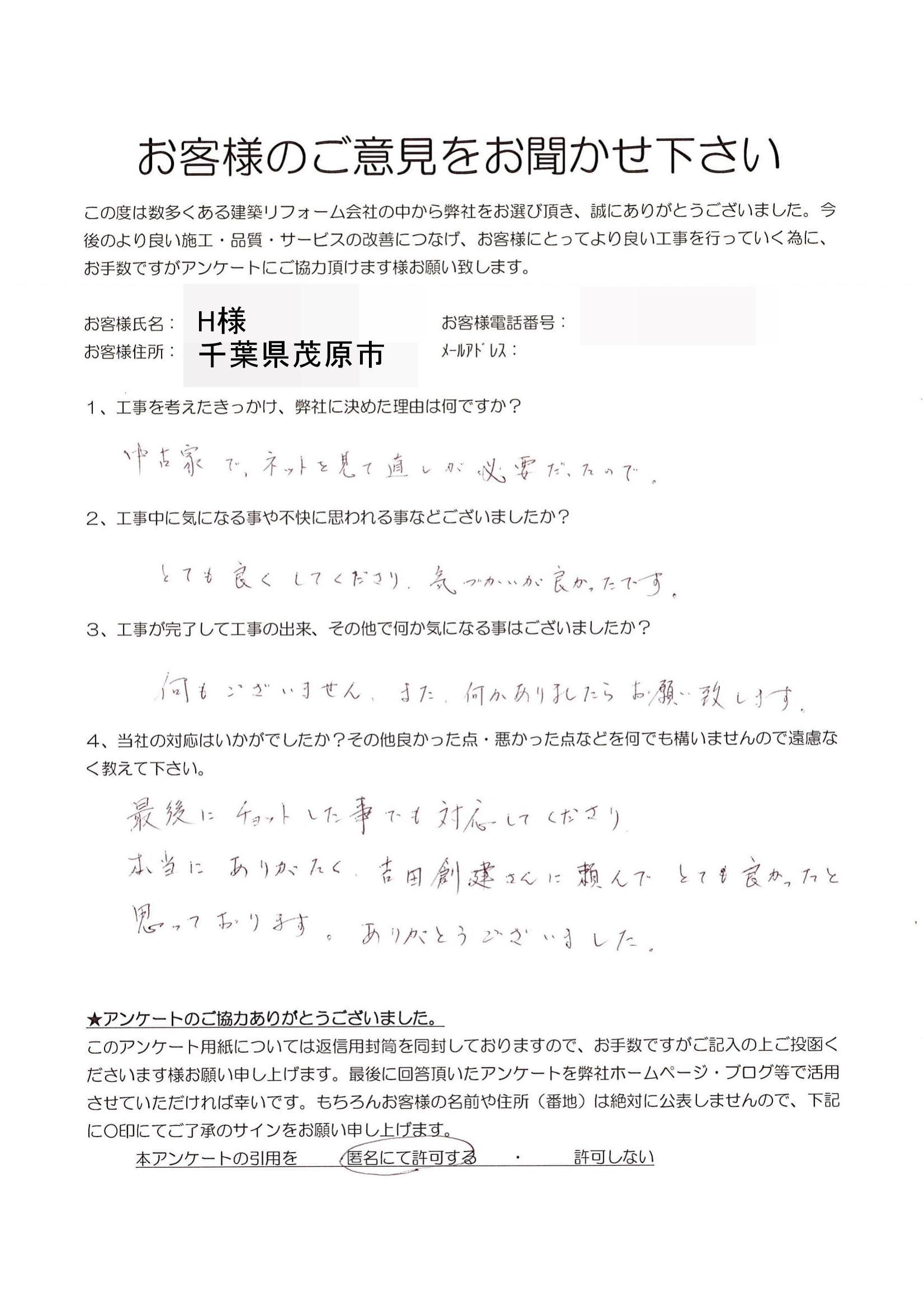 最後にちょっとした事でも対応して下さり本当にありがたく、吉田創建さんに頼んでとても良かったと思っております。