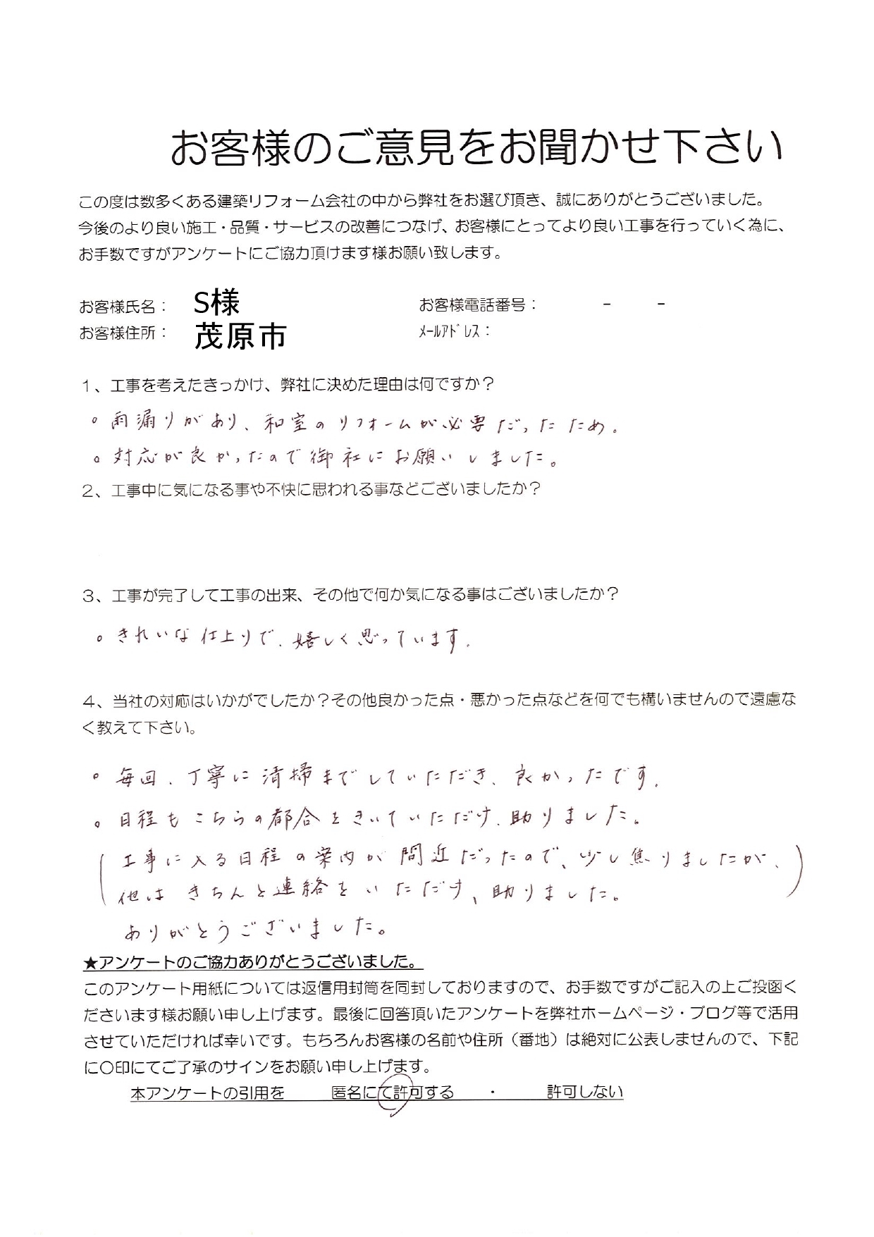 (工事に入る日程の案内が間近だったので少し焦りましたが他はきちんと連絡をいただけ、助かりました。)