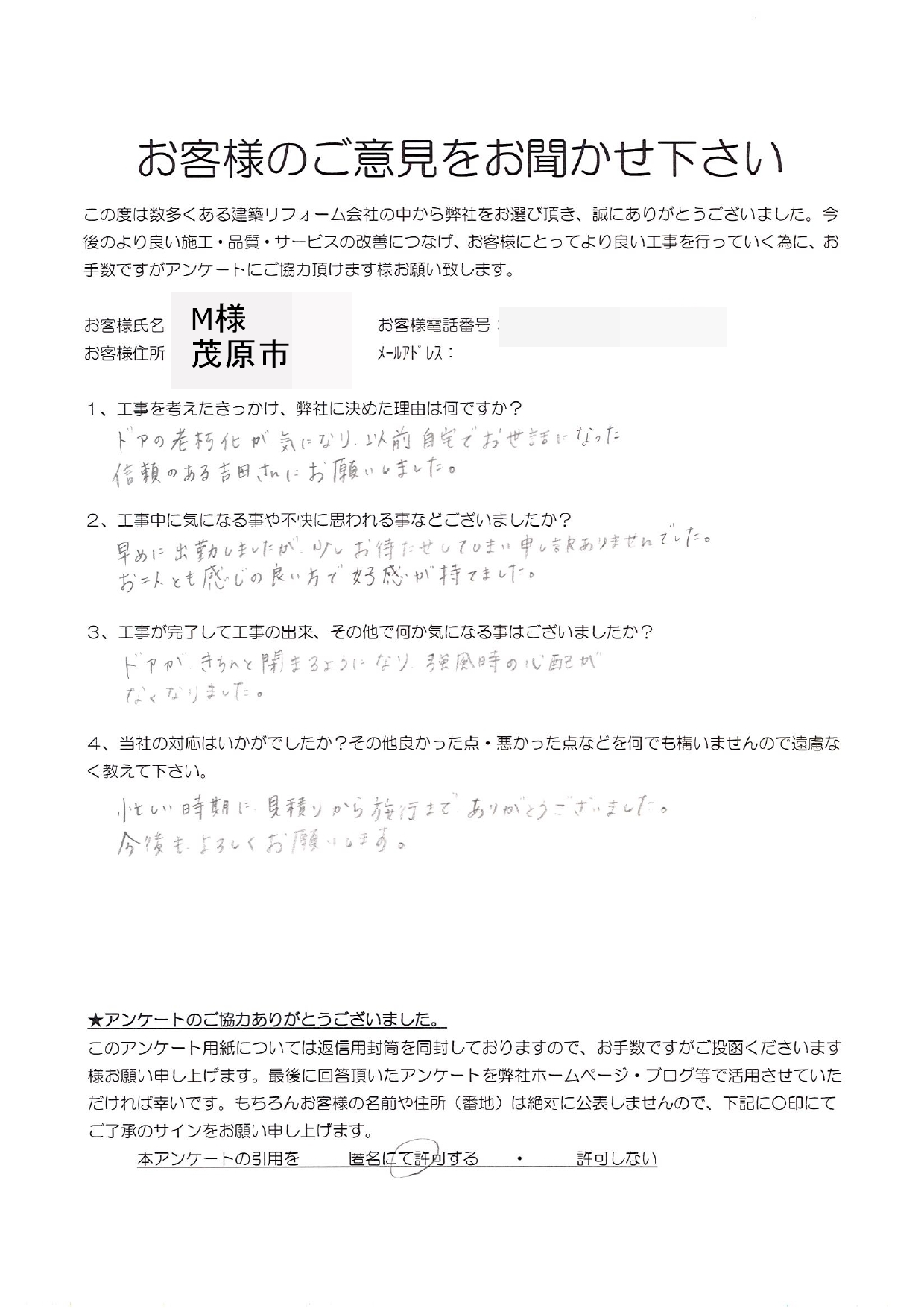忙しい時期に見積もりから施工までありがとうございました。