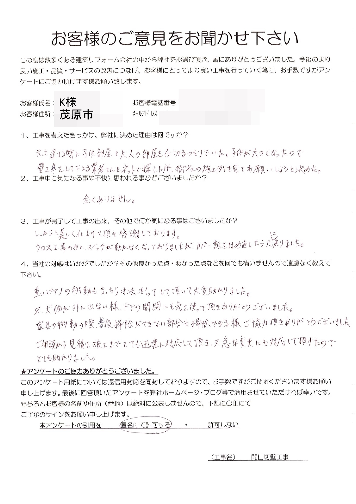 茂原市 K様 間仕切り壁工事
