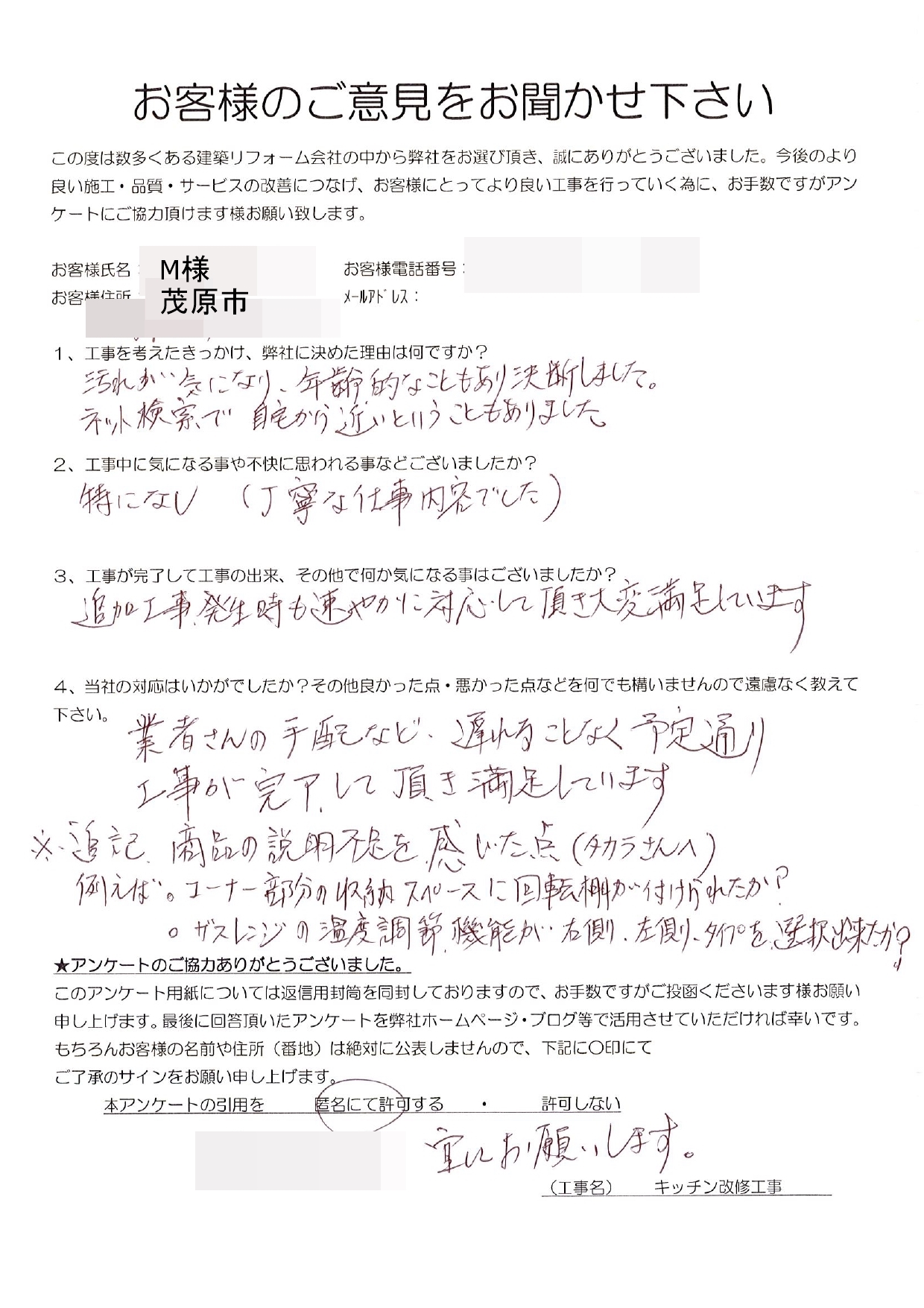 茂原市 M様 キッチン改修工事
