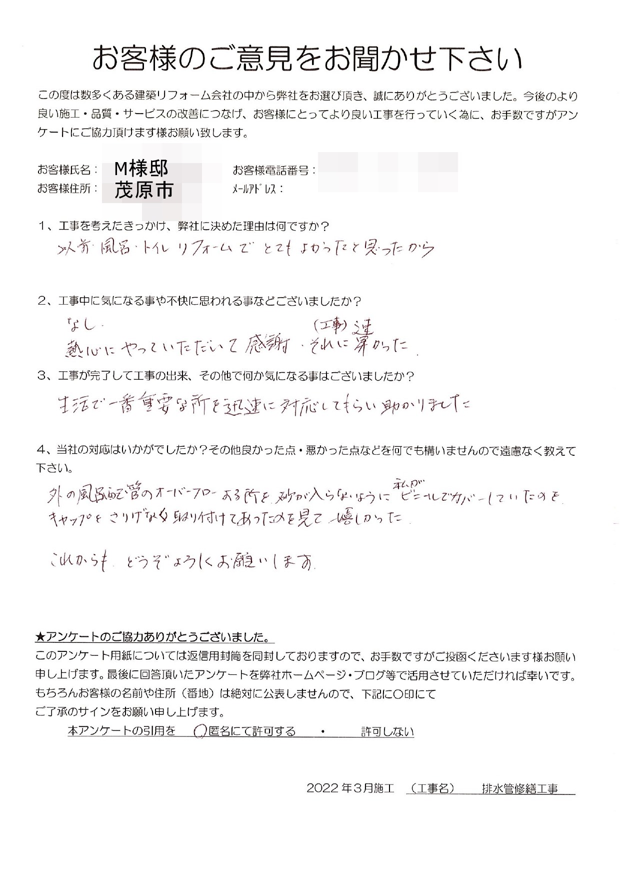 生活で一番重要な所を迅速に対応してもらい助かりました。