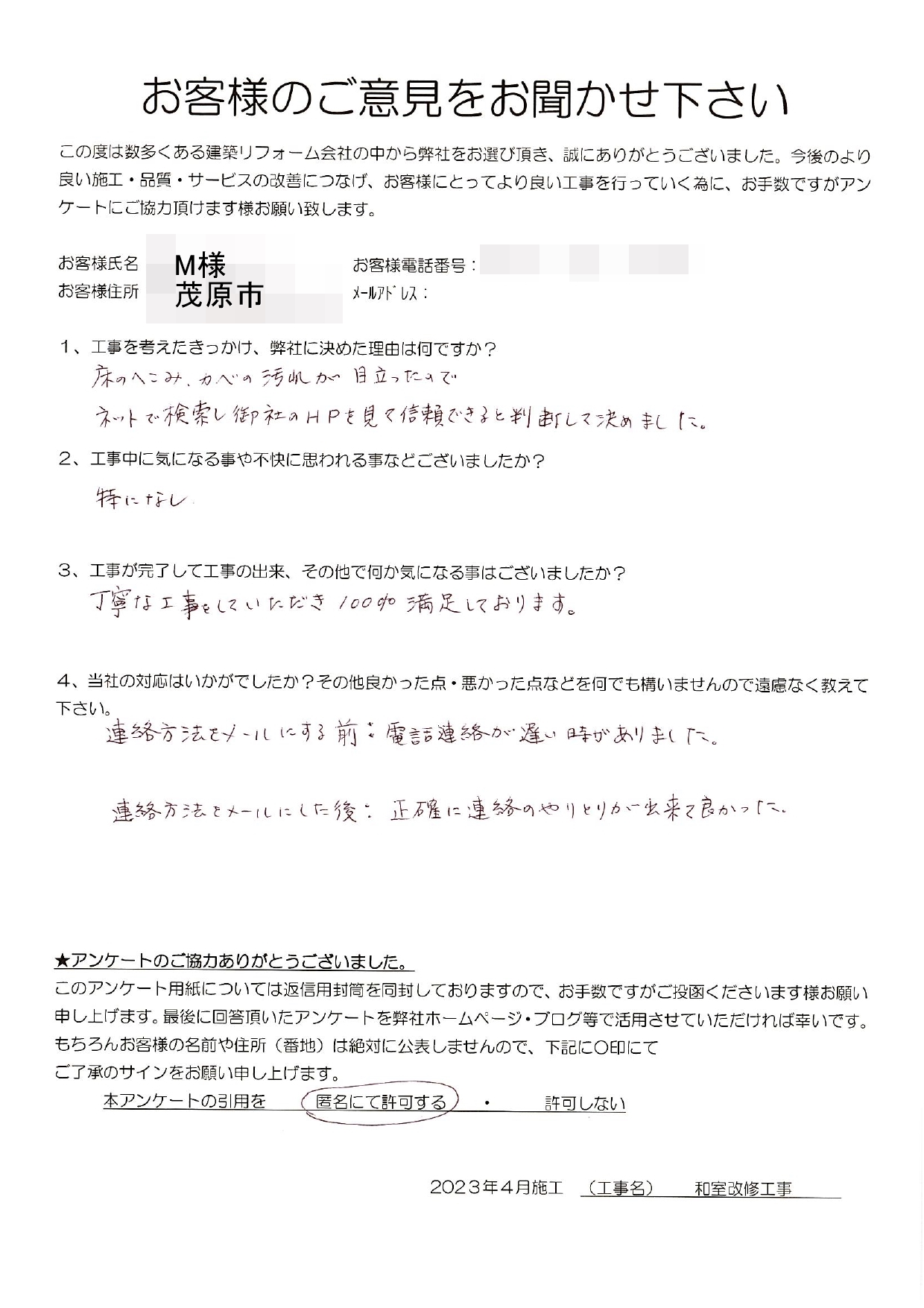 ネットで検索し御社のHPを見て信頼できると判断して決めました。