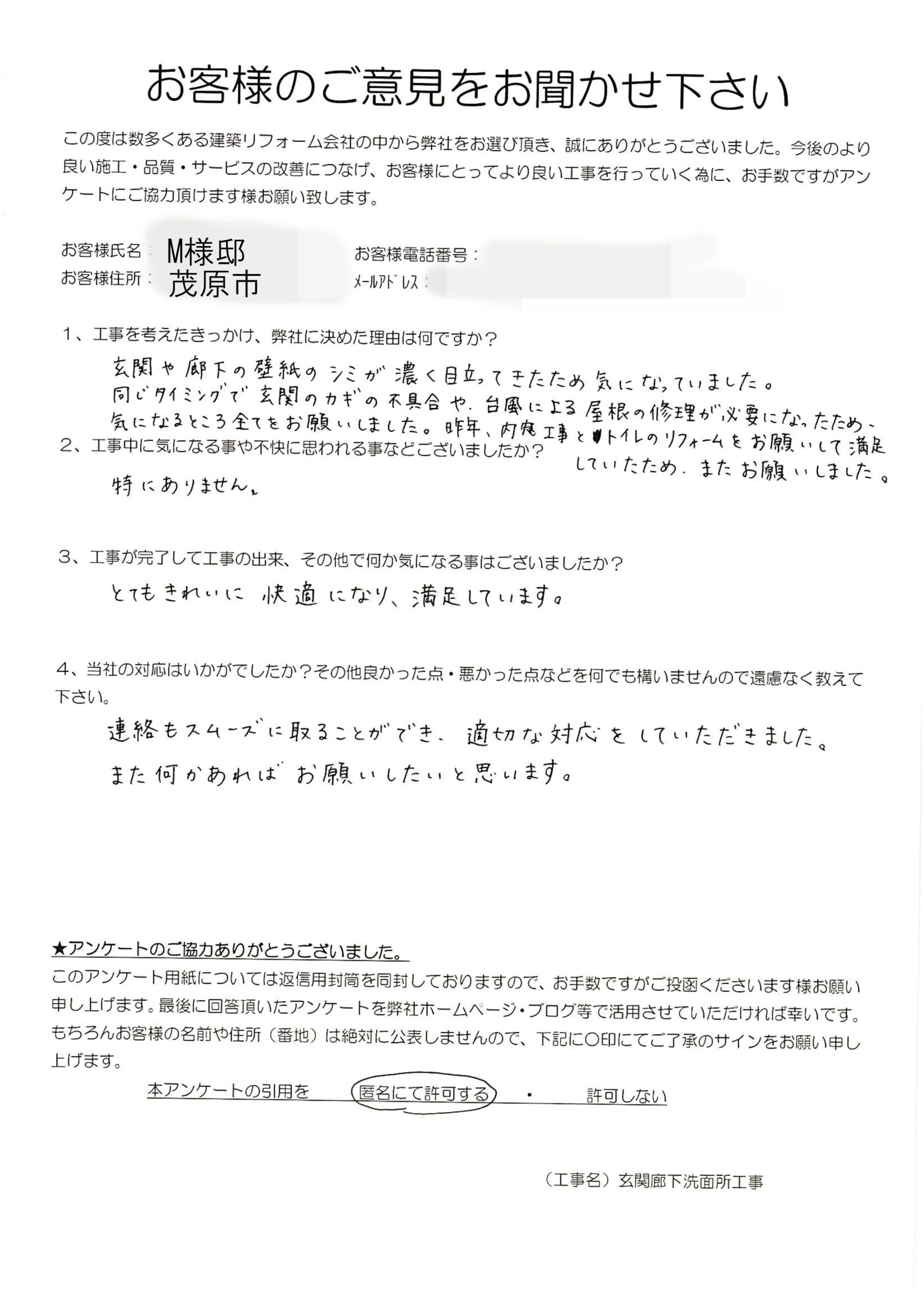 茂原市 M様 玄関廊下洗面所工事
